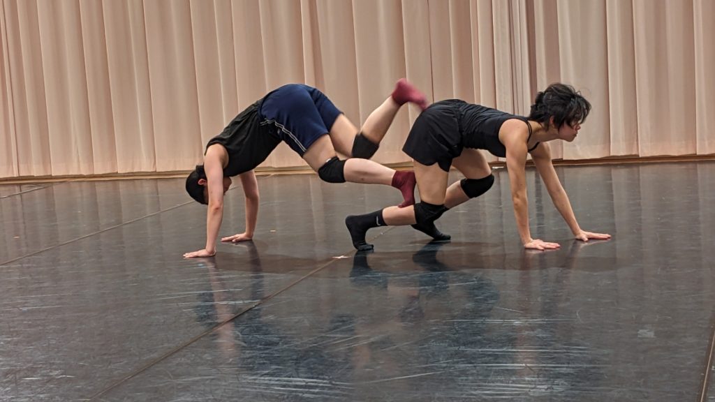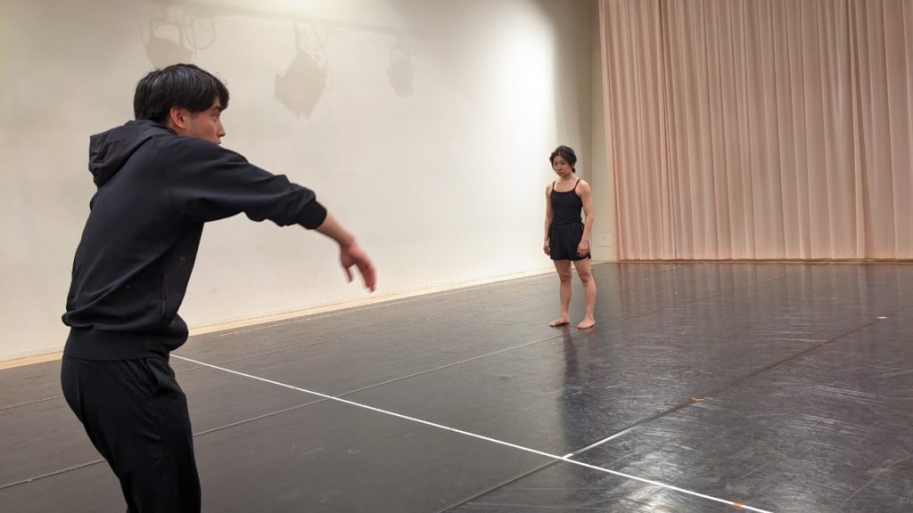 -山田さん 「デュエット作品は密な空間が生まれるものだが、集団として、舞踊家全員が集まって踊っているシーンはやりたいし、見せた方が良いと思っている。『これがNoism2だ」という集団性を最初に見せるのがオープニングの意図。そのなかの一人ひとりが作品のなかでどんな姿を見せていくか。構成は色々試しているが、結果はシンプルなものになりそう。一つひとつの作品を楽しんで貰うために、時間をちょっと作るようなシンプルなもの」