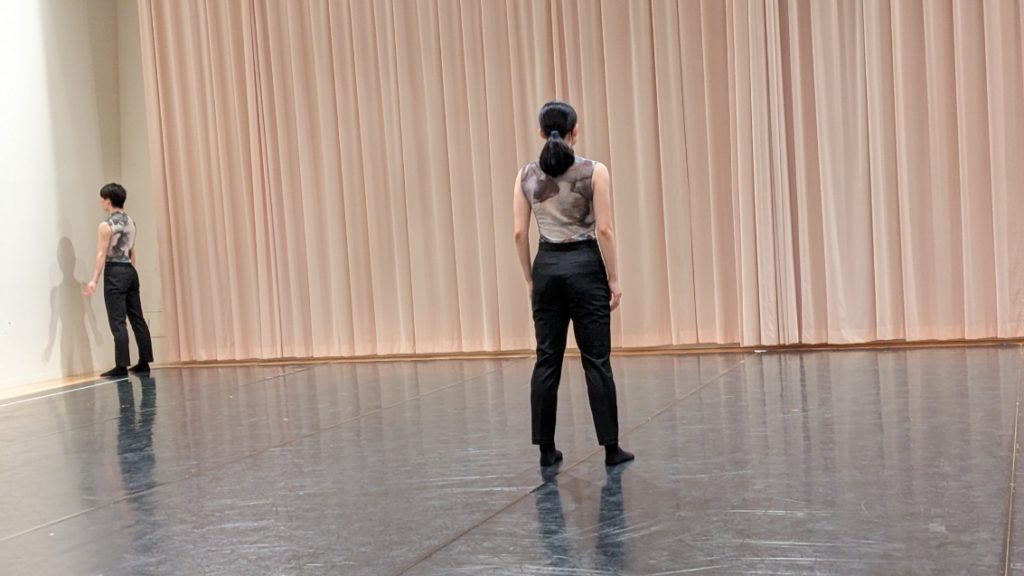 年末からずっとのしかかっている重苦しい空気感をひととき忘れて、舞踊に見入る時間、その贅沢なことと言ったらありませんでした。少し忘れてしまっていたそんな感覚。振付家1人と舞踊家2人。それぞれの「作品」イメージを間に置いて、若き振付家と若き舞踊家が対峙しながら創作を行う様子は、とても瑞々しく、新鮮味溢れる時間でした。