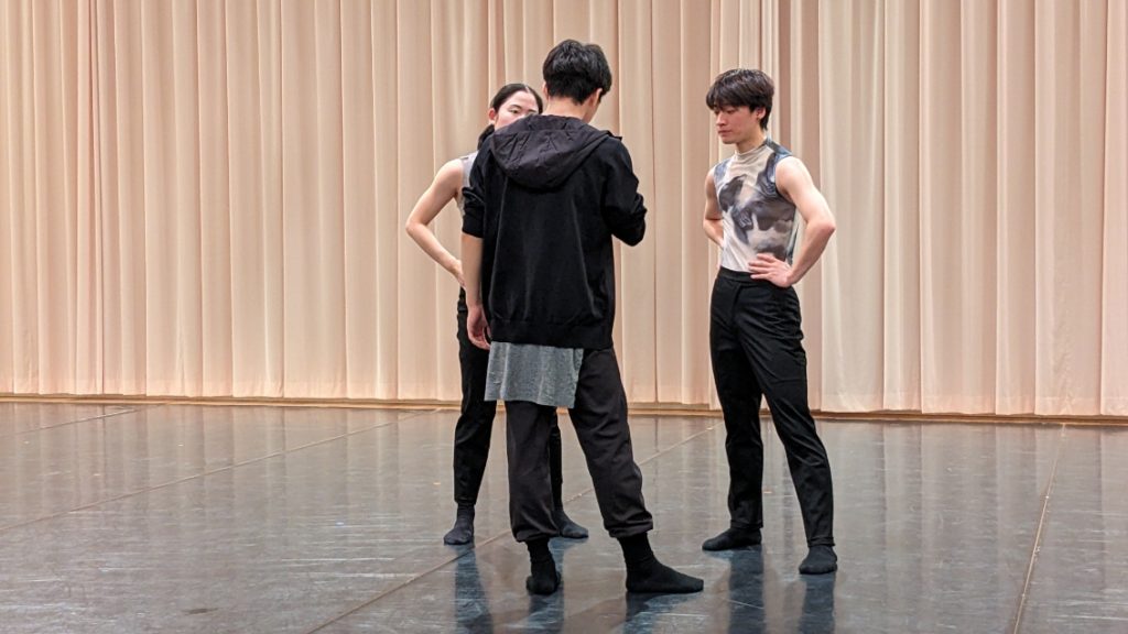3つの作品(の断片)の外見的印象からのみではなく、細かな動きのブラッシュアップを行う3人の若き振付家の姿からも、個性の違い、もっと言えば、多様性を感じることが出来ました。