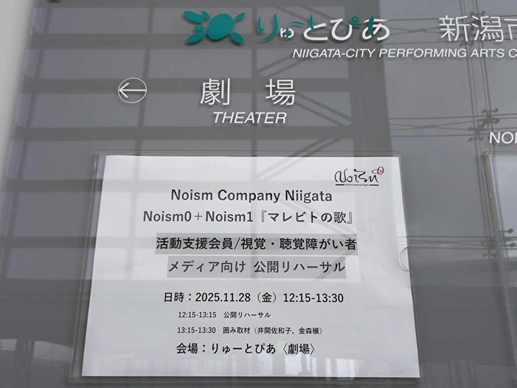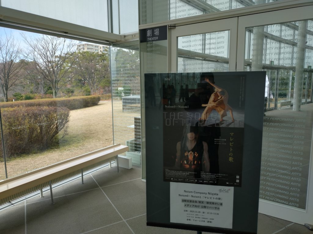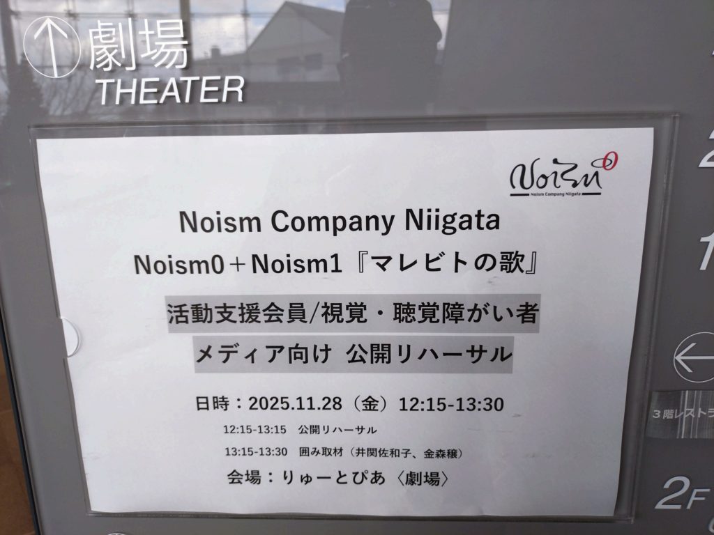 そんな晩秋の正午過ぎ、りゅーとぴあ〈劇場〉を会場に開催されたNoism0+Noism1『マレビトの歌』活動支援会員/視覚・聴覚障がい者/メディア向け公開リハーサル及び囲み取材に出掛けてきました。