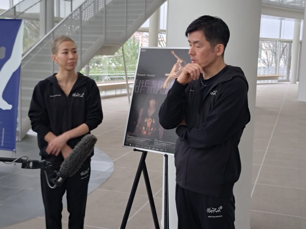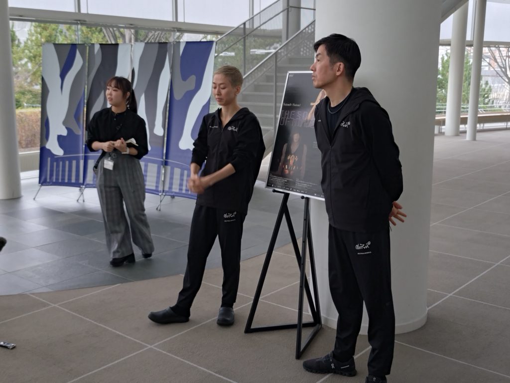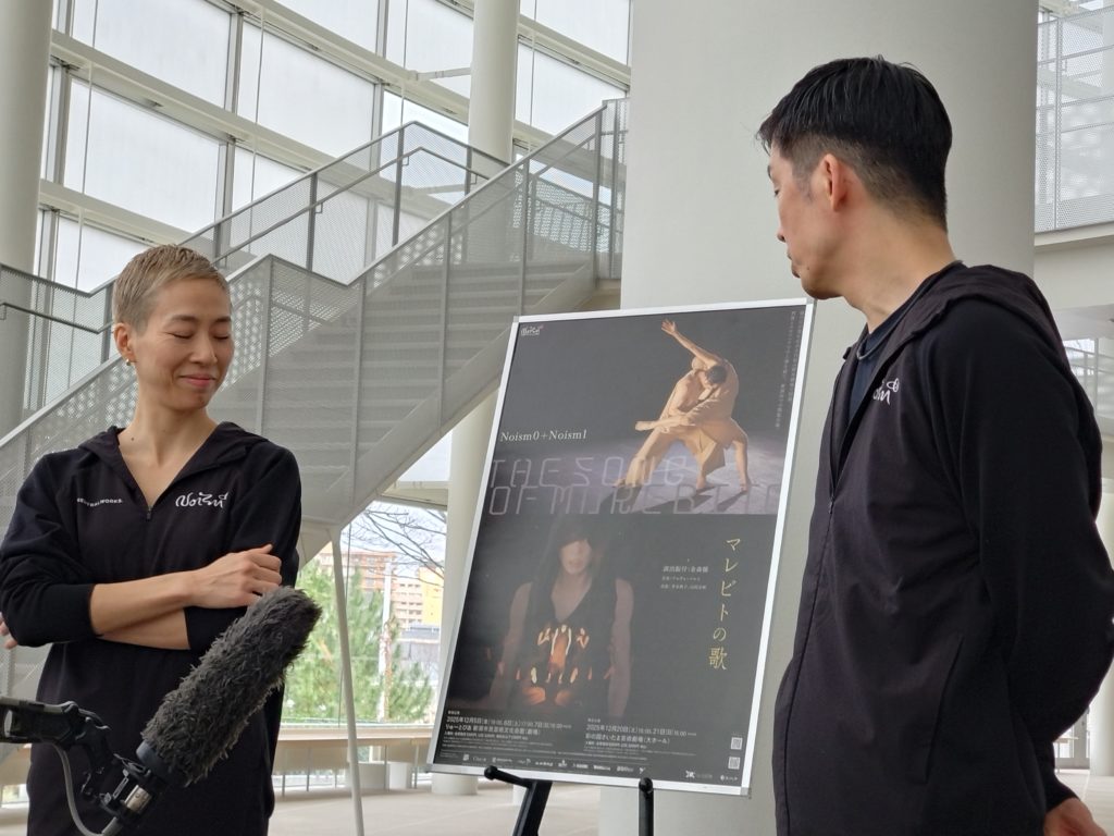 13:22、公開リハーサルは終了。続けて、ホワイエに場所を移して、芸術総監督の金森さんと国際活動部門芸術監督の井関さんへの囲み取材です。こちらでは、そこでのやりとりを少しご紹介いたします。(司会:広報担当・髙橋和花さん)