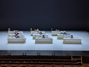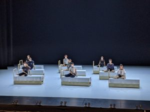 20分間の休憩後、今度は劇場版の『セレネ、あるいは黄昏の歌』です。前月、黒部の前沢ガーデン屋外ステージで観たときには、その圧倒的なランドスケープを味方につけたスケールの大きさが印象的だった訳ですが、そこはやはり金森さん、今度は有限な劇場空間において、装置と照明とにより、濃密な肌触りを醸し出したばかりか、幽玄な拡がりまで可視化されていました。そうした手捌きの見事さは、これまでにも巡演先の舞台形状の違いから大きく異なるヴァージョンで上演された『ROMEO & JULIETS』といった例もありましたが、今回もその例に漏れません。