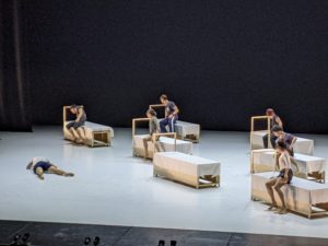 19:00を少しまわって、客電が落ちると、緞帳があがり、舞台上に銀色のバレエバーが見えてきます。『Amomentof』世界初演の幕が上がりました。しばしの無音からやがて聞こえてくるマーラー。その大きくうねるような音楽に乗って総勢25人が紡ぎ出すのは、あたかも「地層」のように積み重ねられていく一日一日の弛まぬ稽古に始まり、舞踊家の心の揺れもみせながら、矜持と献身が結実に至る様子。積分され、やがて再び微分されていくNoismが刻んだ20年という時間。この作品を通して、目にしかと映じるのはその年月が常に刹那の積み重ねとして(稽古場で、或いは舞台上で)意志をもって生きられてきたという疑いようのなさに尽きるでしょう。